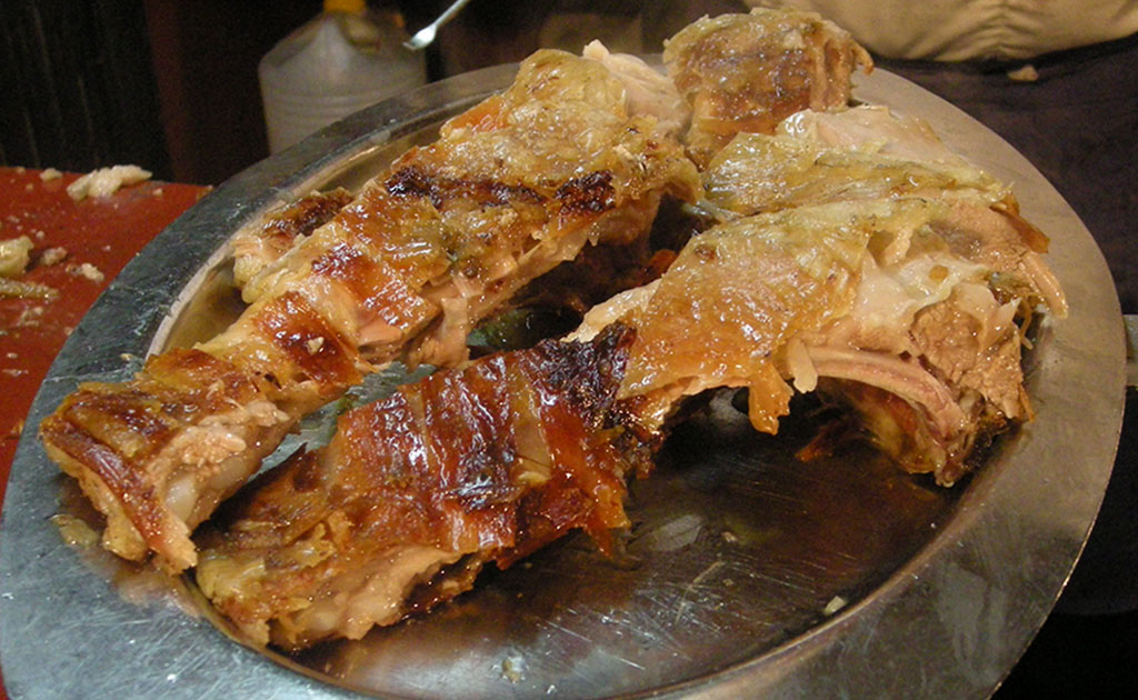 Una tradición que llega hasta nuestros días. Asado lentamente en la cruz delante del asador...
