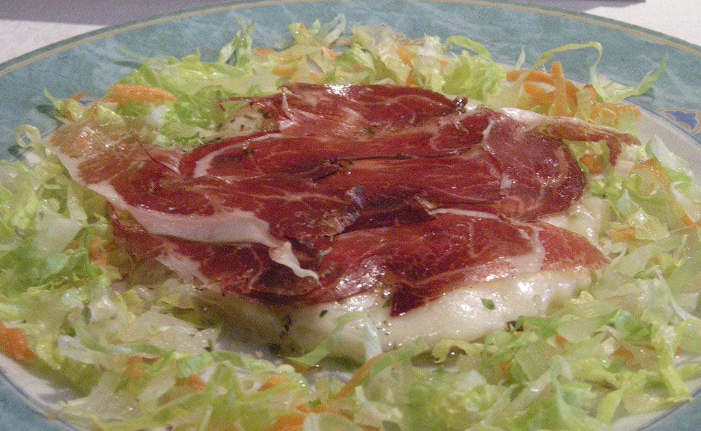 Provoleta al carbón, con anchoas o con jamón de bellota: queso semiduro derivado del provolone y sabor suave, asado a la parrilla y aderezado con orégano y aceite de oliva. Se lo presenta como entrada.