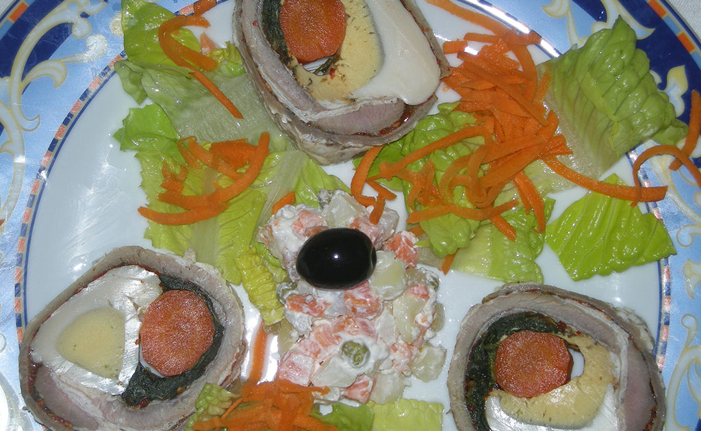 Matambre casero, preparado a base de la carne magra que se encuentra entre el costillar y el cuero del animal...